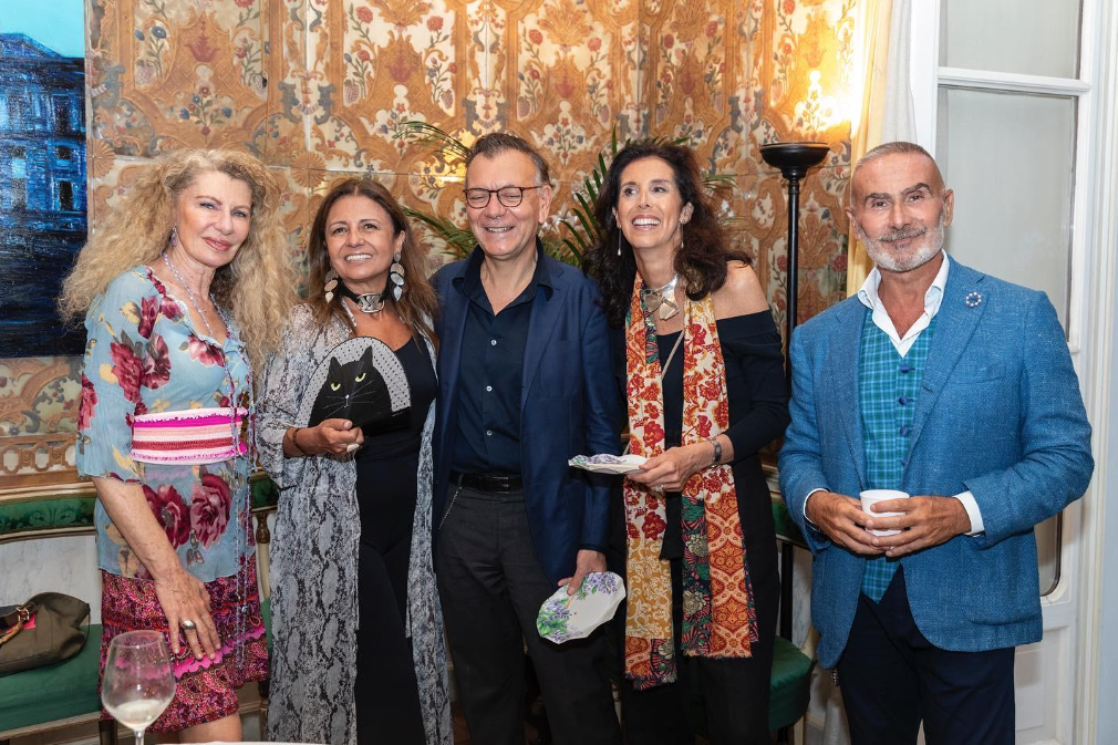 Arte in Salotto è, di fatto, un nuovo modo di fare mostra, sia in dimore private, esclusivissime, sia nello spazio permanente di Camilla nel cuore di Brera. Invitati solo un ristretto numero di collezionisti, professionisti, insomma la crème de la crème della bella Napoli così da poter interagire direttamente con gli artisti. Da Milano l’avvocato Ilaria Barbierato dialoga con la collega Antonella Esposito Gagliardo. Le due reginette del Foro coltivano nuove idee come la creazione della Fondazione Loro di Monte di Dio. Impeccabile anfitrione Marta con croccante buffet allestito nella sala degli Specchi. A me sembrava una mini Versailles.