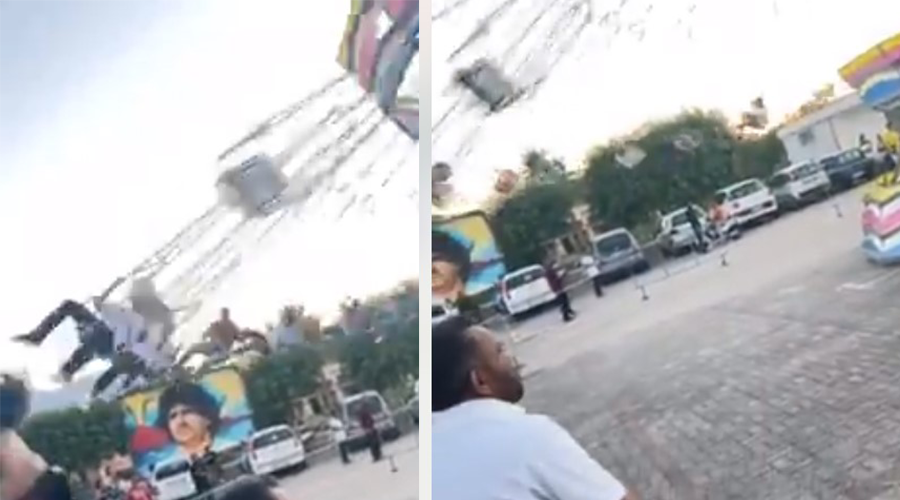 Dalle immagini si vede chiaramente come la giostra si stacchi dal suolo piegandosi su un lato. Poi un momento di panico in cui si cerca di capire cosa stia accadendo.