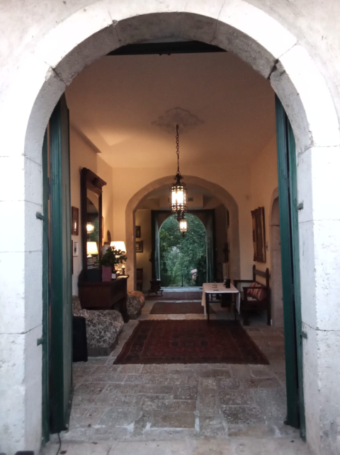 Location da cartolina: mare di bosco, frescura che ti accarezza, casina di caccia borbonica ora feudo di Generoso e Roberto di Meo, produttori di vino, i più prelibati.
