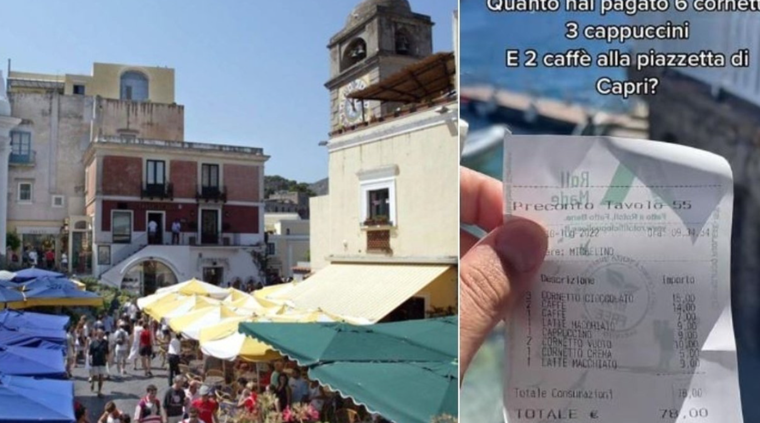 Una colazione “normale” composta da 6 cornetti (tre al cioccolato, uno alla crema e due vuoti), 3 caffè e due latte macchiato, un conto alto: 78 euro. Gli utenti di Tik Tok però si dividono: “È Capri! Vuoi andare? Paga”, scrive Annagiulia nei commenti al video, come tanti altri utenti che dicono appunto che Capri ha proprio la fama di essere un’isola “costosa”. Altri invece sono dalla parte del ragazzo e commentano: “Non è nemmeno uno scontrino fiscale”; e qualcuno la prende a ridere: “Al bar dove vado io, di solito, con 78 euro mi lascia anche le chiavi”.