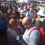 Prima o poi sarebbe successo. Di assistere al brutto della diretta, lo sbarco degli Unni del mordi e fuggi. Ore 9,15 slargo del molo di Capri, 35 gradi già ti picchiano in testa mentre il traghetto/ammiraglio più capiente della flotta sbarca 680 distru/turisti. No, non li conto uno ad uno, me lo dice lo stacca/biglietto mentre m’ imbarco su Driade per la corsa successiva. E vengo travolta da una fauna che di umano ha soltanto le ascelle olezzanti. Mi ci trovo in mezzo, nel girotondo di un girone da inferno, come documentano le foto. Il mio è un grido di rabbia soffocato.