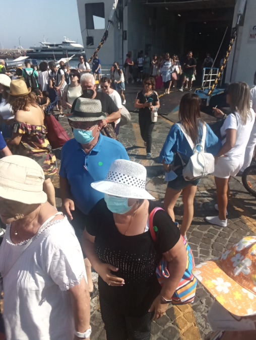 Con chi prendersela? Il sindaco Marino sono anni che ci prova a contenere il colosso “infestante” ma ha le mani legate dalla Regione. E’ un delicato gioco di equilibri fra le compagnie di navigazioni, croceristi, portuali, guide turistiche, barcaioli della Blu Grotto, venditori di panini, limoncellini e ventaglietti. Tutti devono guadagnarci, figuriamoci dopo due anni di chiusura da pandemia, devono rifarsi o no. Certo viaggiare è una palestra per il cervello. Ma i nervi? E il cuore che scoppia…