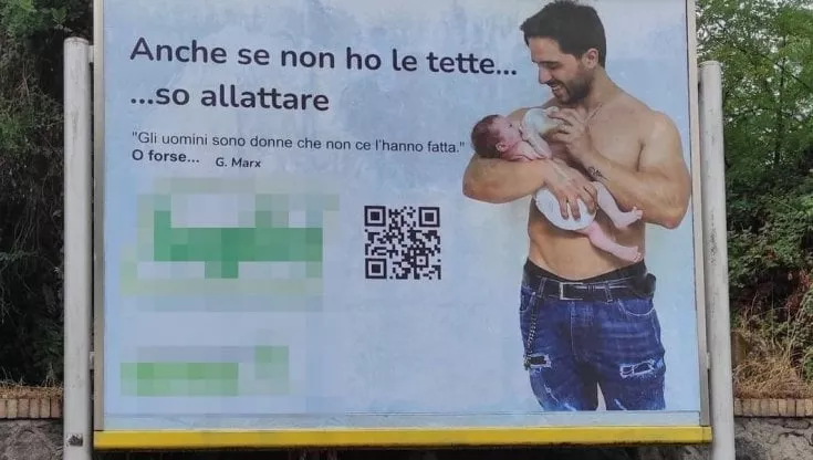 “Anche se non ho le tette so allattare. Gli uomini sono donne che non ce l’hanno fatta“, queste frasi scritte sopra una grande immagine che ha mostrato un padre a torso nudo che somministra il latte con il biberon a proprio figlio, hanno scatenato le polemiche.