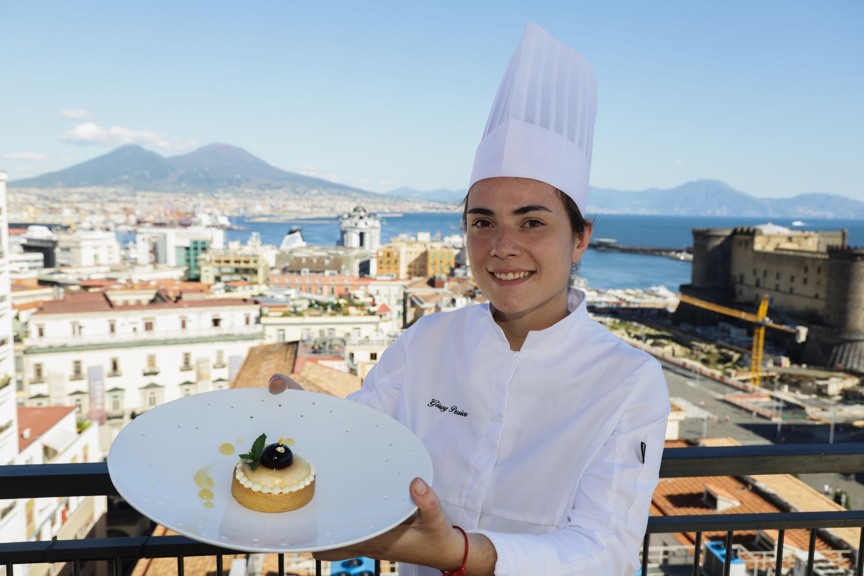 Si tratta di Giusy Persico, giovane pasticcera della brigata del ristorante stellato Il Buco di Sorrento. Giusy, dopo una formazione da grafica pubblicitaria e numerosi corsi di specializzazione in pasticceria, si è appassionata alla lavorazione del cioccolato e alla pasticceria da ristorazione.