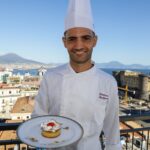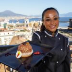 La sfida, che si è svolta sul panoramico Roof Garden Angiò del Renaissance Naples Hotel Mediterraneo, ha visto confrontarsi Giusy Avallone, della pasticceria Avallone di Quarto; Guglielmo Cavezza, titolare della Pasticceria Mommy Cafè di Cicciano; Raffaele Cristiano, della Pasticceria artigianale Raffaele Cristiano di Barra; Giovanni Giordano, pasticcere presso Sal De Riso Costa D’Amalfi di Minori; Nello Iervolino, pastry chef del Regina Isabella di Ischia e Ilaria Inchingolo, dell’Openlight caffè di Andria.