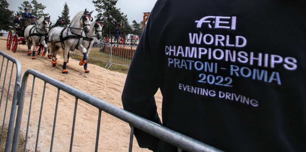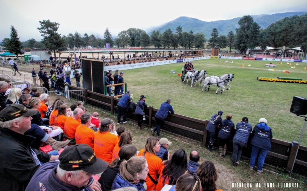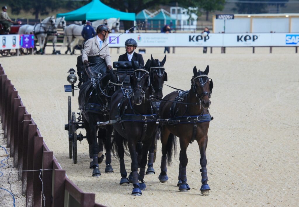 Pratoni del Vivaro a Rocca di Papa (RM) – dal 15 al 18 e dal 22 al 25 di settembre 2022 (in due fine settimana) si è disputato il campionato mondiale di equitazione del concorso Completo (Primo fine settimana) e di Attacchi (Secondo fine settimana). Due eventi a squadre ed individuali con prove di dressage salto ostacoli e di cross country ovvero con ostacoli naturali. Un percorso country disegnato da Giuseppe Dalla Chiesa che con la collaborazione della Federazione Equestre Internazionale e del WWF, hanno organizzato una visita guidata del percorso country per il progetto “Salva un oasi”. Presenti quindi al Mondiale (quindicesima edizione di concorso Completo eseguito nel primo fine settimana): Lituania, Canada, Cina, Messico, Spagna, Francia, Germania, Gran Bretagna, Irlanda, Italia, Polonia, Olanda, Austria, Svizzera, Svezia, Stati Uniti, Belgio, Repubblica Ceca, Danimarca, Ecuador, Ungheria, India, Australia, Brasile, Nuova Zelanda, Giappone e Thailandia. Per l’Italia hanno gareggiato: Giovanni Ugolotti, “Centro Sportivo Esercito” sul cavallo Duke of Champions; Susanna Bordone, “Gruppo Sportivo Carabinieri” con il cavallo Imperial Van De Holtakkers; Evelina Bertoli, assistente della “Polizia Penitenziaria” con il cavallo Fidyj Des Meleezes; Marco Cappai assistente capo della “Polizia di Stato” con Uter; Arianna Schivo, “Gruppo Sportivo Carabinieri” con Queifra de L’Ormeau. Nella seconda sezione invece (nel secondo fine settimana) ci sono state le gare di Attacchi, tiro a quattro. Luca Cassottana è stato l’unico italiano a disputare questa disciplina che abbiamo visto concludersi con gare di coni, maratona vinta dall’Olanda e caroselli: Carosello del 4° Reggimento Carabinieri a Cavallo, Carosello Ragazzi del San Raffaele di Viterbo e Carosello di Lance dei Lancieri di Montebello. Un mondiale che si finalizza così nella prima settimana: