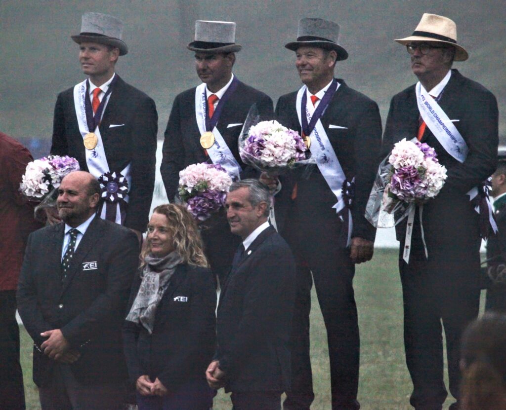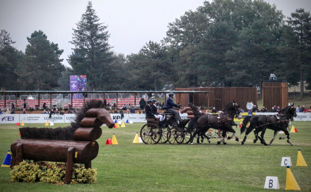 (Attacchi, seconda settimana) tra la nebbia e la pioggia, L’australiano Boyd Exell è per la sesta volta campione del mondo di attacchi individuali con 156,06 punti negativi vincendo anche il dressage. L’argento è andato all’olandese Ijsbrand Chardon con 159,82 punti e il bronzo al tedesco Michael Brauchle con 163,89 punti. Mentre il campionato del mondo di attacchi a squadre l’ha vinto l’Olanda con 313,93 punti aggiudicandosi la medaglia d’oro (campioni assoluti), l’undicesimo assoluto e sesto nelle ultime sette edizioni, con Chardon sr, suo figlio Bram e Koos De Ronde. L’argento è della Germania con 327,45 punti con Brauchle, Mareike Harm e Georg von Stein, mentre il bronzo è del Belgio con 356,39 punti, con Glenn Geerts, Dries Degrieck e Tom Stokmans. L’Italia con Luca Cassottana, ha completato il percorso al 15º posto con 14,69 punti negativi, arrivando al 25º posto nella classifica individuale con 217,22 punti negativi.