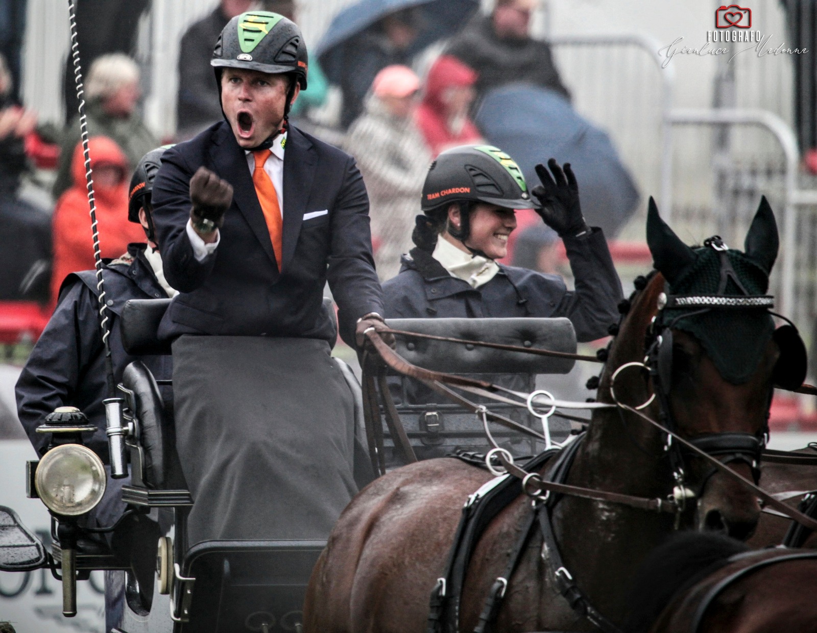 (Attacchi, seconda settimana) tra la nebbia e la pioggia, L’australiano Boyd Exell è per la sesta volta campione del mondo di attacchi individuali con 156,06 punti negativi vincendo anche il dressage. L’argento è andato all’olandese Ijsbrand Chardon con 159,82 punti e il bronzo al tedesco Michael Brauchle con 163,89 punti. Mentre il campionato del mondo di attacchi a squadre l’ha vinto l’Olanda con 313,93 punti aggiudicandosi la medaglia d’oro (campioni assoluti), l’undicesimo assoluto e sesto nelle ultime sette edizioni, con Chardon sr, suo figlio Bram e Koos De Ronde. L’argento è della Germania con 327,45 punti con Brauchle, Mareike Harm e Georg von Stein, mentre il bronzo è del Belgio con 356,39 punti, con Glenn Geerts, Dries Degrieck e Tom Stokmans. L’Italia con Luca Cassottana, ha completato il percorso al 15º posto con 14,69 punti negativi, arrivando al 25º posto nella classifica individuale con 217,22 punti negativi.