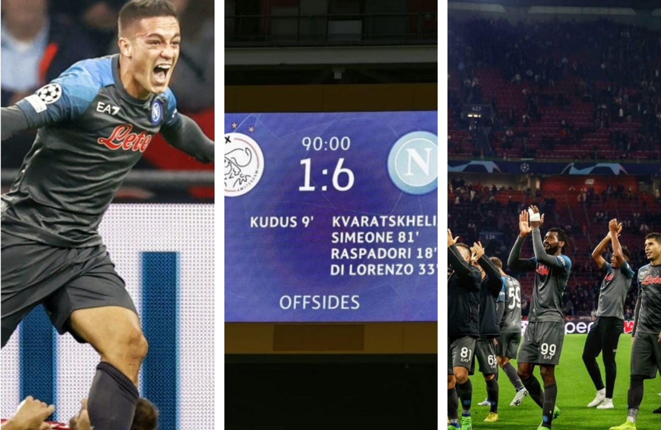 In Olanda l’ennesima grande prova, vai sotto, ti rialzi, ribalti, dai spettacolo e li demolisci. In trasferta, in Champions League: sul campo di una squadra mitologica come l’Ajax. Tecnica, cattiveria, voglia di vincere e di voler fare la storia. Kvara, Raspadori, Kim, Anguissa, Lobotka, Di Lorenzo, è impossibile soffermarsi sul singolo, sceglierne 1, 2 o 3 è un vero e proprio delitto: la verità unica, inconfutabile è che mister Spalletti ha creato una giostra che funziona alla perfezione, una macchina perfetta che crea dipendenza.