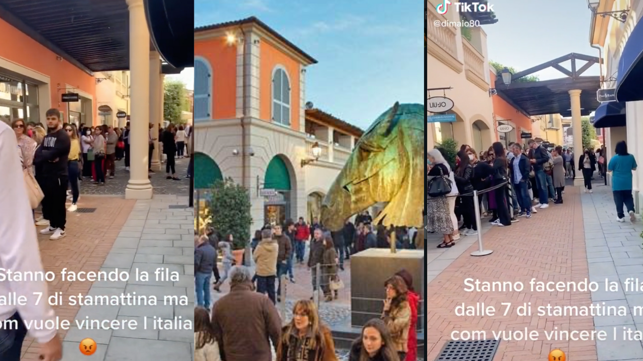 E’ polemica su Tik Tok per la fila che si è creata questa mattina all’Outlet La Reggia di Marcianise, in provincia di Caserta. Tantissime persone sono arrivate al centro commerciale per acquistare abbigliamento di marca a prezzi scontati. Ovviamente c’è chi nota la follia di questa decisione ovvero il fatto che mai un numero così elevato di partecipanti sarebbe sceso in piazza per protestare contro il caro bollette.