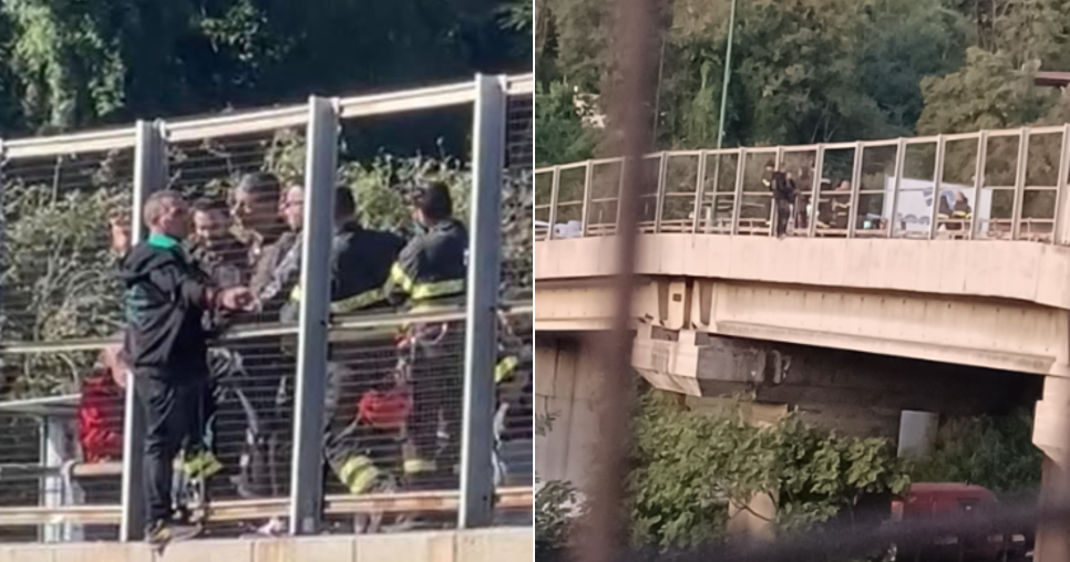 A quanto pare l’uomo si stava dirigendo al lavoro con il furgone di servizio e si è fermato sul ponte scavalcando la recinzione…..alcuni passanti lo hanno notato ed hanno allertato le forze dell’ordine!