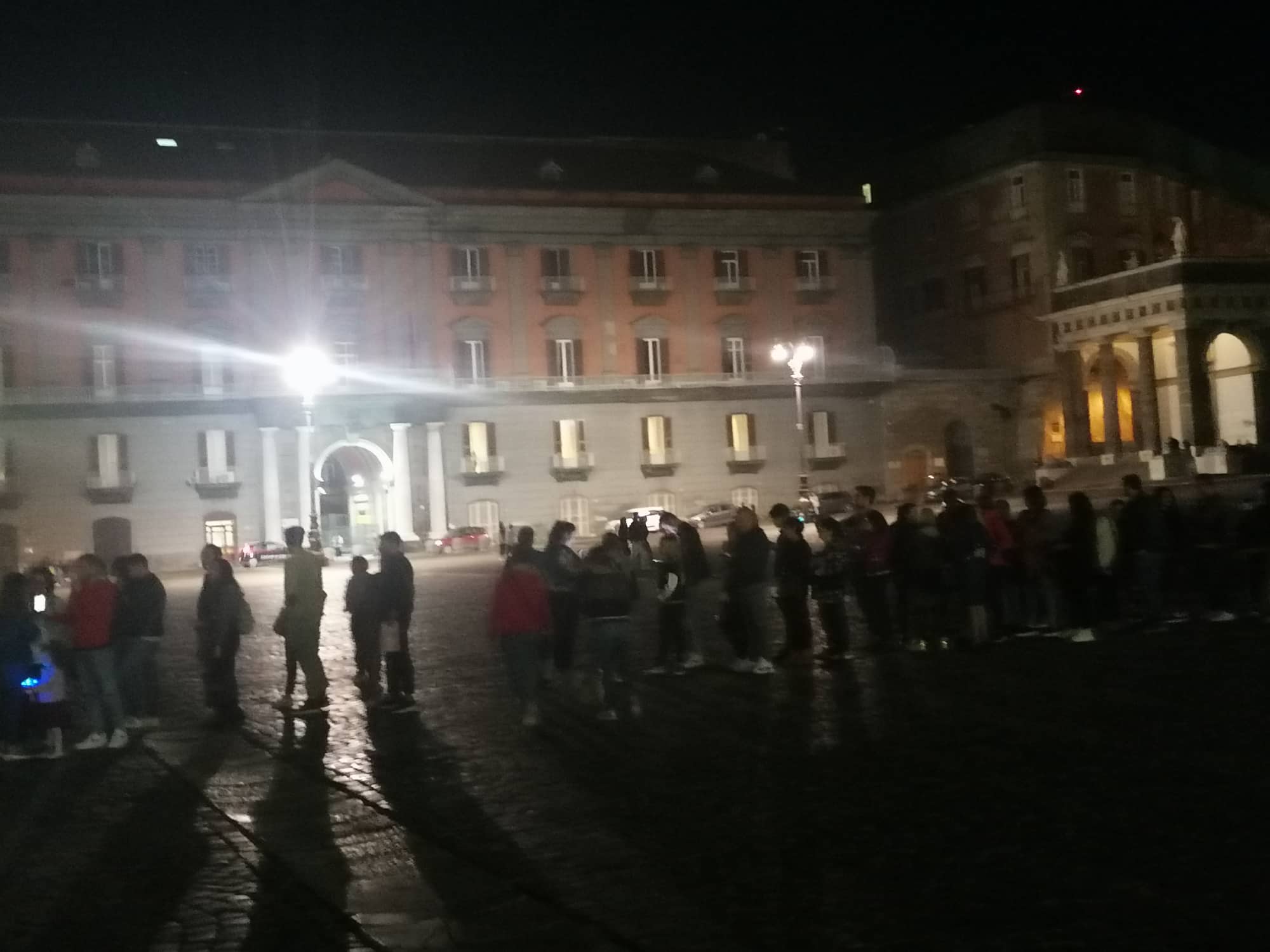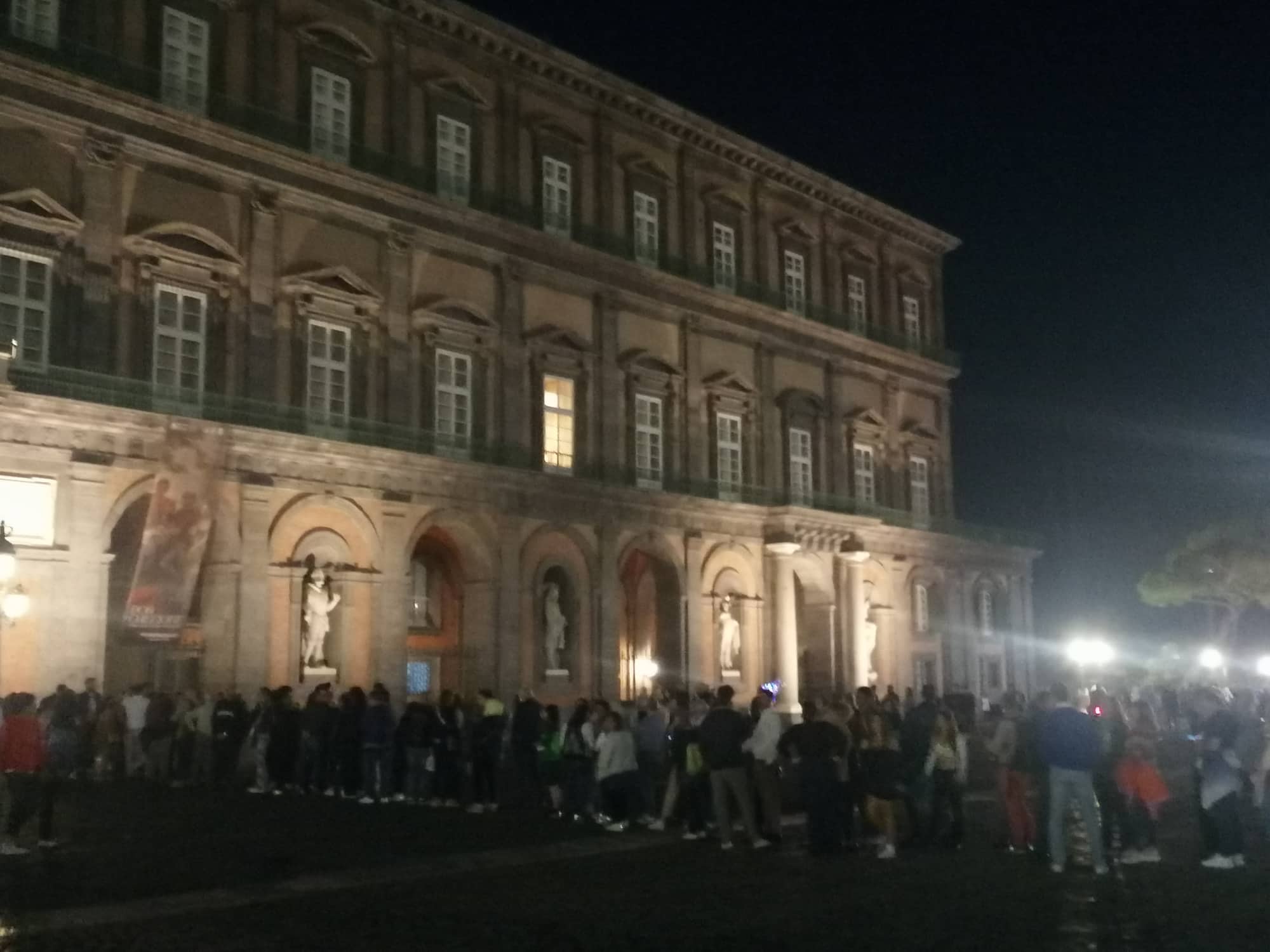 La grande affluenza in piazza Plebiscito è dovuta all’iniziativa di poter visitare il Palazzo Reale il sabato sera a soli due euro. Le prossime date saranno il 5 e il 9 novembre. Un’iniziativa che ha già attirato moltissime persone, spinte non solo dal prezzo del biglietto d’ingresso economico ma anche dal fatto di poter ammirare la bellezza della reggia napoletana di sera, in un’atmosfera davvero suggestiva.