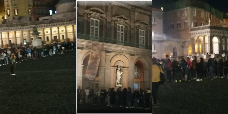 Lunga fila quest’ultimo sabato di ottobre in piazza Plebiscito, dove all’incirca un centinaio di persone hanno composto una lunga coda davanti al Palazzo Reale. Un’atmosfera magica, complice anche il clima caldo la città pullula di persone e turisti.