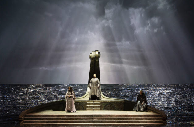 Elisir d’amore o filtro della morte su questo scambio di pozione è basato l’intreccio della tragedia Tristan und Isolde che in tedesco suona piu forte. Luci e ombre di un’opera crepuscolare dove il terzo protagonista nell’impianto scenico saranno proprio le sfumature di luci magistralmente orchestrate dal maestro Cesare Accetta che ci illumina d’immenso. Il mare sembra ondeggiare tra tonalità argentate sotto un cielo che da cupo lo colora di tutte le tonalità dell’alba.