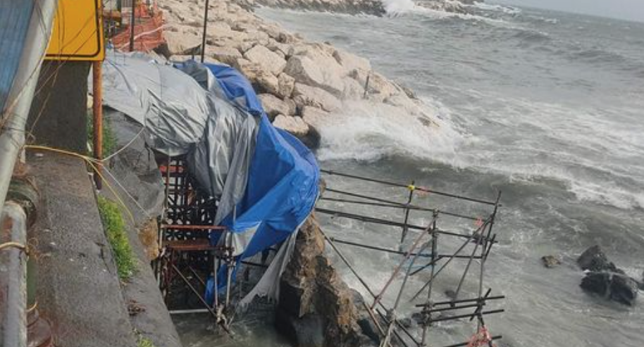 Le mareggiate causate dalla tempesta che lo scorso martedì si è abbattuta su Napoli, hanno distrutto i ponteggi che formavano l’impalcatura dei lavori. Insomma è tutto da rifare per quello che è uno dei tanti tesori della città lasciati nel degrado e nell’insicurezza.