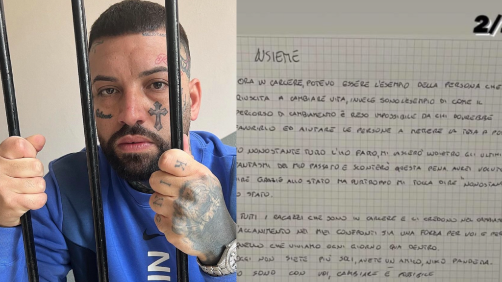 Niko Pandetta, il trapper arrestato per spaccio che dovrà scontare almeno 4 anni di carcere, ha scritto una lettera dalla sua prigione. Questa è stata pubblicata dai social-manager e si chiama: “Insieme 2/2“. E’ la seconda parte della missiva che viene dedicata ai ragazzi detenuti.