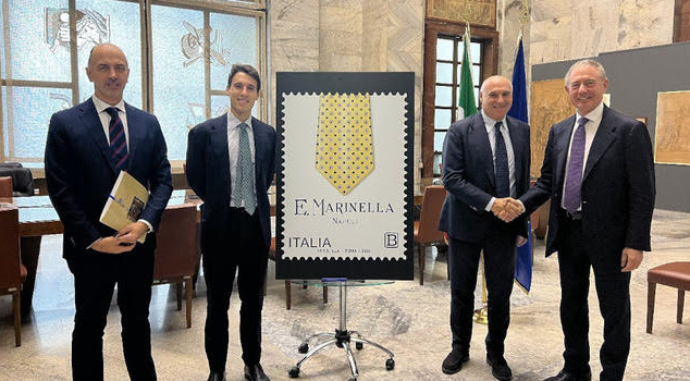 Il francobollo, stampato dall’Istituto Poligrafico e Zecca dello Stato e diffuso da Poste Italiane è stato presentato nel corso di una cerimonia dedicata all’emissione, con annullo filatelico, a cui hanno partecipato autorità e i padroni di casa. Maurizio e Alessandro Marinella, padre e figlio, solidità e senso della visione, fiuto e talento. E un futuro da riempire con nuovi concept: la griffe Marinella ( glocal, che da local si fa global) declinata in sciarpe, foulard, scarfette, turbanti, pullover, mocassini, occhiali, borse, borsette, borsoni, gemelli, oggetti di design/arredamento con l’iconografica stampa delle cravatte. E molto di piu’. E in cantiere l’apertura di Casa Marinella per ospitare i clienti piú esclusivi da ogni dove. Padre e figlio, entrambi cresciuti nel negozio di Piazza Vittoria fondato da Eugenio (bisnonno di Alessandro) un secolo fa. Il negozio, tutto in elegante boiserie inglese, è ancora li’. Un tempio. Dove futuro e tradizione camminano a braccetto.“Dal 1914 Marinella è un simbolo di eleganza e un’eccellenza di Napoli e del Made in Italy. Un’azienda alla quarta generazione che ha puntato su qualità e grandi capacità artigianali, affermandosi a livello globale” ha commentato il ministro Adolfo Urso. Il francobollo raffigura una cravatta in seta realizzata dall’azienda con uno dei caratteristici disegni, icone di stile e di eleganza, indossate da capi di Stato e di Governo, registi e attori, sportivi e teste coronate.
