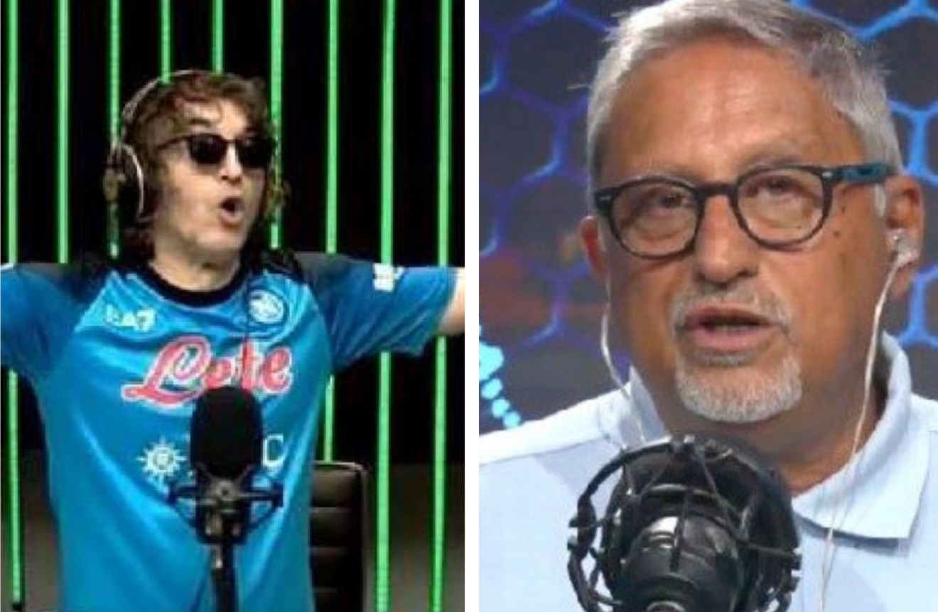 Giuseppe Cruciani che indossa una maglia del Napoli durante la sua trasmissione: provocazione o cambio di ‘fede’? L’immagine è diventata virale in rete.