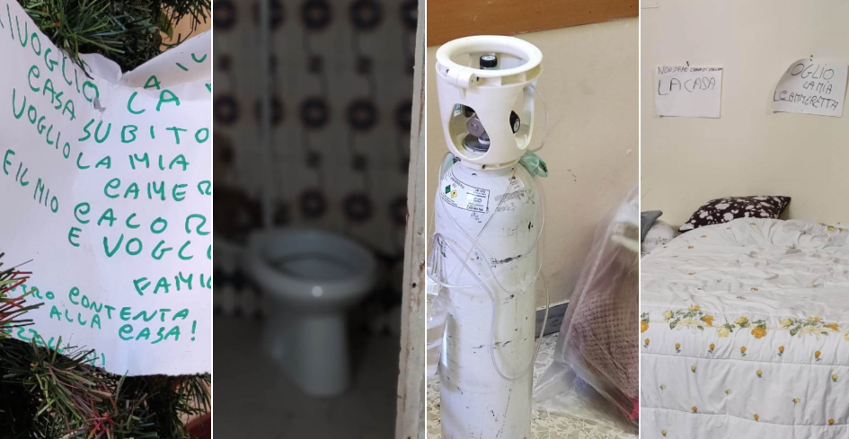 Tuttavia, tra queste persone, vi sono anche due donne gravemente malate e diversi bambini, compreso qualche neonato. Per vivere devono accontentarsi di tre stanze: una funge da camera da letto, con due postazioni ‘matrimoniali’ improvvisate su delle basi di legno. Poi c’è la ‘cucina’, così identificata per la presenza di un fornellino. L’ultimo spazio è quello di una stanza ‘da pranzo’ dove gli sfollati mangiano e stanno insieme. Come bagno c’è invece un piccolo tugurio con un solo servizio igienico. Non vi sono docce.