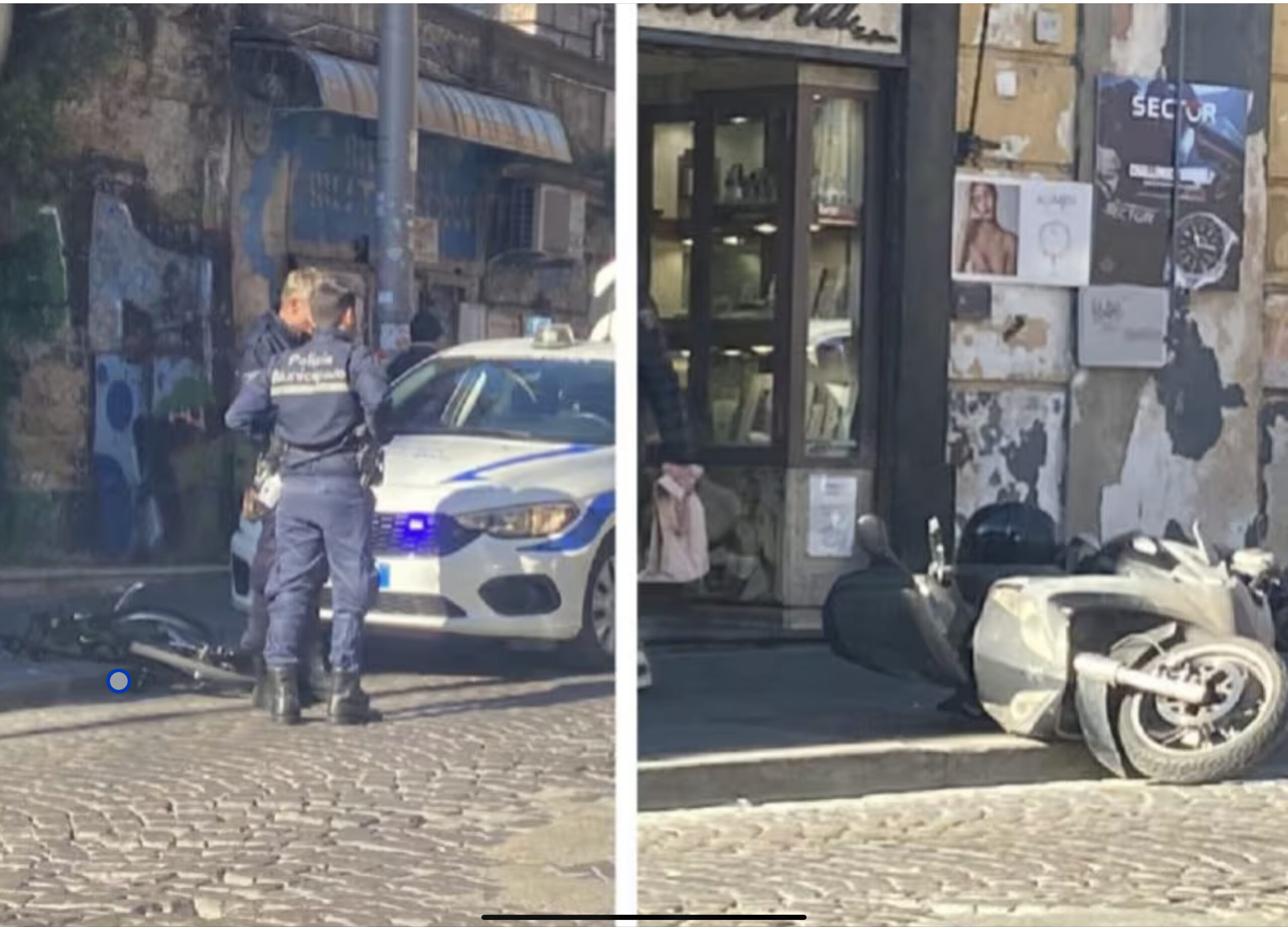 Grosso spavento a Napoli, nella mattinata di oggi, sabato 14 gennaio, un uomo alla guida di una vettura – una Bmw grigia – ha travolto uno scooter e un ciclista che gli erano davanti.