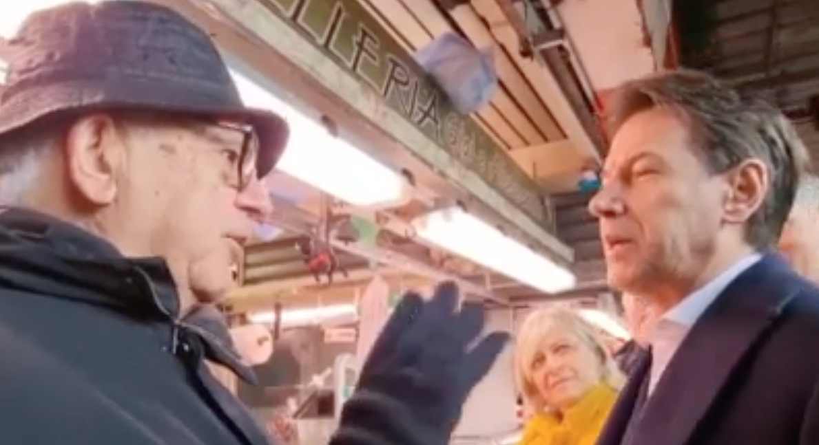 Giuseppe Conte è in campagna elettorale nel Lazio, a sostegno della candidata alla presidenza della Regione del Movimento 5 Stelle Donatella Bianchi (conduttrice Rai di ‘Linea Blu’). In occasione di una visita al mercato romano di San Giovanni di Dio, il leader grillino ha avuto un incontro molto particolare.
