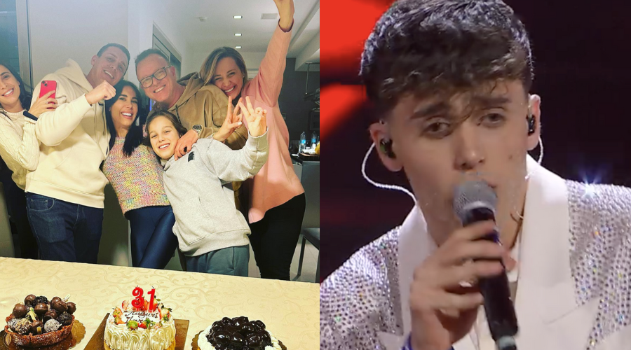 Intanto Gigi D’Alessio con Denise, i figli Ilaria, Claudio e Andrea, aspettavano la classifica con tanto di torta per i 31 anni di Ilaria.