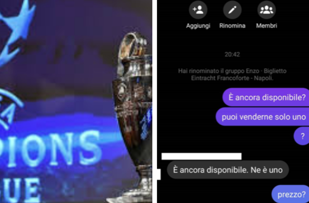 Un utente ha segnalato – attraverso degli screenshot – delle chat tra chi voleva acquistare dei biglietti – per la partita di Champions League tra Francoforte e Napoli – e degli ‘elementi’ che vendono i ticket della gara a prezzi esorbitanti. Addirittura, il costo di un biglietto, è di 500 euro ‘poco trattabili’ come scrive il ‘venditore’.