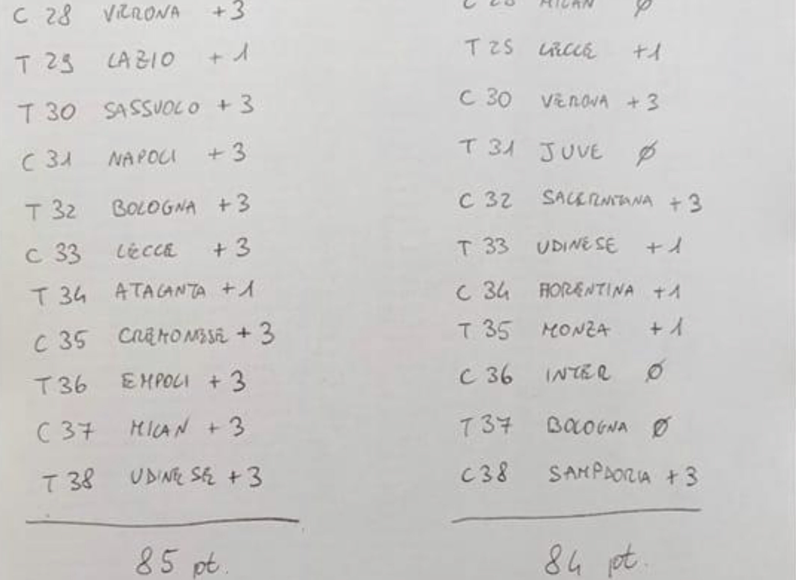 Sta facendo il giro del web una tabella realizzata da un tifoso della Juventus sul prosieguo del campionato. Un percorso che alla fine della fiera vede vincere lo Scudetto la Juventus e il Napoli clamorosamente secondo.