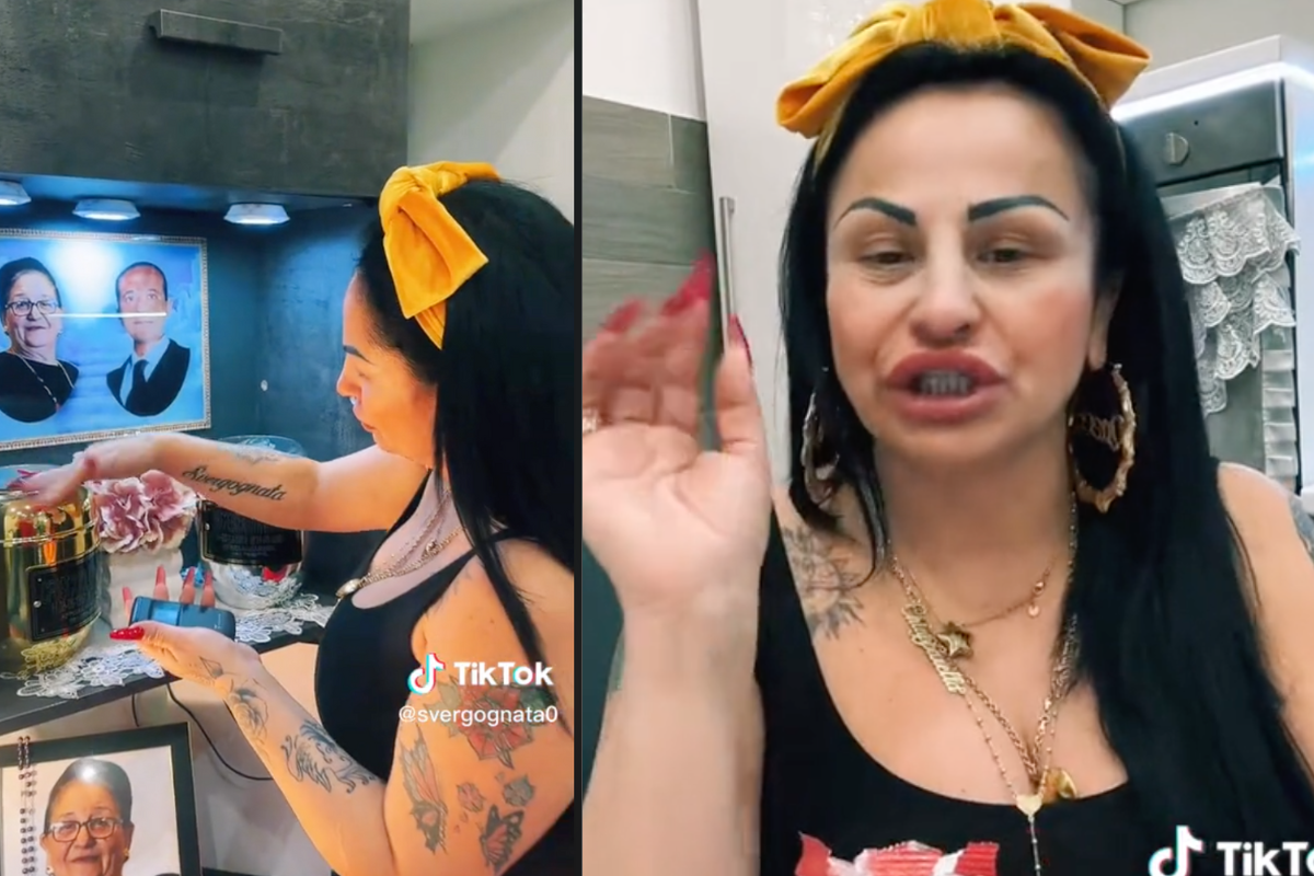 La tiktoker ha fatto disporre le ceneri dei suoi genitori in un urne dorate e argentate. Le ha messe in casa sua creando un vero e proprio altarino. Insomma una piccola cappella alla portata di tutti e in bella vista.