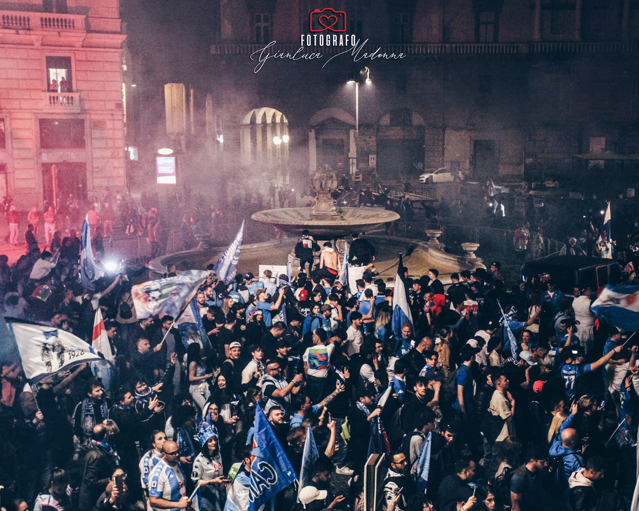 Mentre si prospetta una chiusura campionato di almeno +16 punti dalla seconda in classifica, a Napoli si realizza un sogno come ben cantavano le curve dei tifosi del Napoli “Abbiamo un sogno nel cuore, Napoli torna campione”. Un Napoli che ritorna campione dopo lo scudetto del 90, arriva una festa adatta anche per le famiglie, per i bambini e per i turisti, una festa che dura fino all’alba. Un quadro dell’amore completato da una giovane coppia di fidanzati/tifosi che si baciano (da notare nelle fotografie scattate dal sottoscritto).