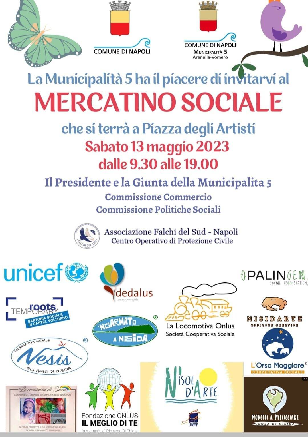 Sabato 13 maggio si terrà al Vomero, in Piazza degli Artisti, Il Mercatino Sociale, evento cui prenderanno parte molte associazioni benefiche, che esporranno e venderanno i loro prodotti interamente fatti a mano. Dalle 09.30 alle 19.30 sarà possibile acquistare realizzazioni hand made e contribuire così ai progetti delle singole cooperative.