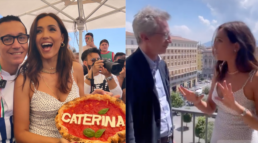 Una chiacchierata col sindaco Manfredi e poi, con vestito a pois e tacchi a spilli, di corsa a via Caracciolo per tenere fede alla sua promessa. Caterina ha impastato e sfornato pizze ai passanti insieme a Gino Sorbillo.