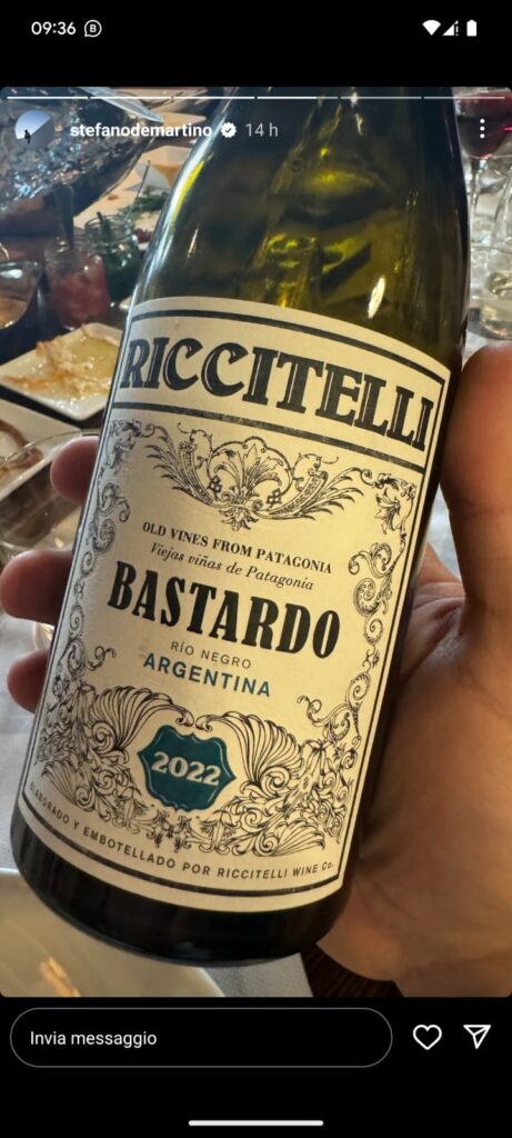 Il bel napoletano ha postato la foto di una bottiglia di vino con su scritto “Bastardo” e sotto prodotta in Argentina. Un chiaro segnale e un collegamento con le dichiarazioni molto forti fatte dalla showgirl.