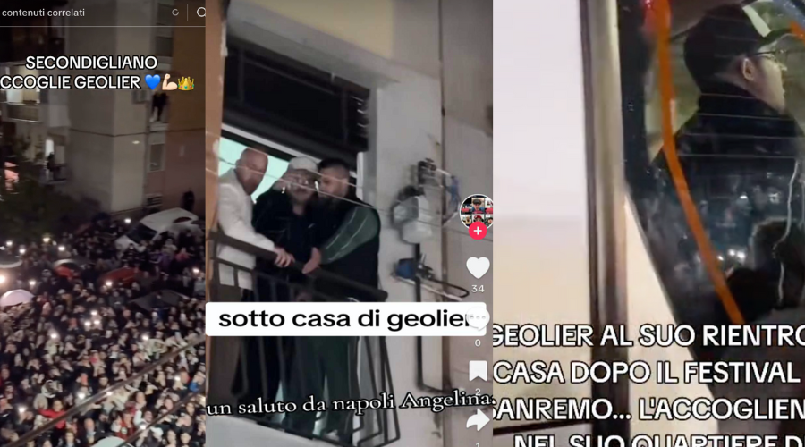 Dopo le polemiche, ma soprattutto il grandissimo successo di Geolier a Sanremo, il rapper napoletano torna a Napoli, nel suo quartiere, a Secondigliano. Per lui è grandissima festa e in migliaia assediano tutte le strade che conducono verso casa sua, nel Rione Gescal.