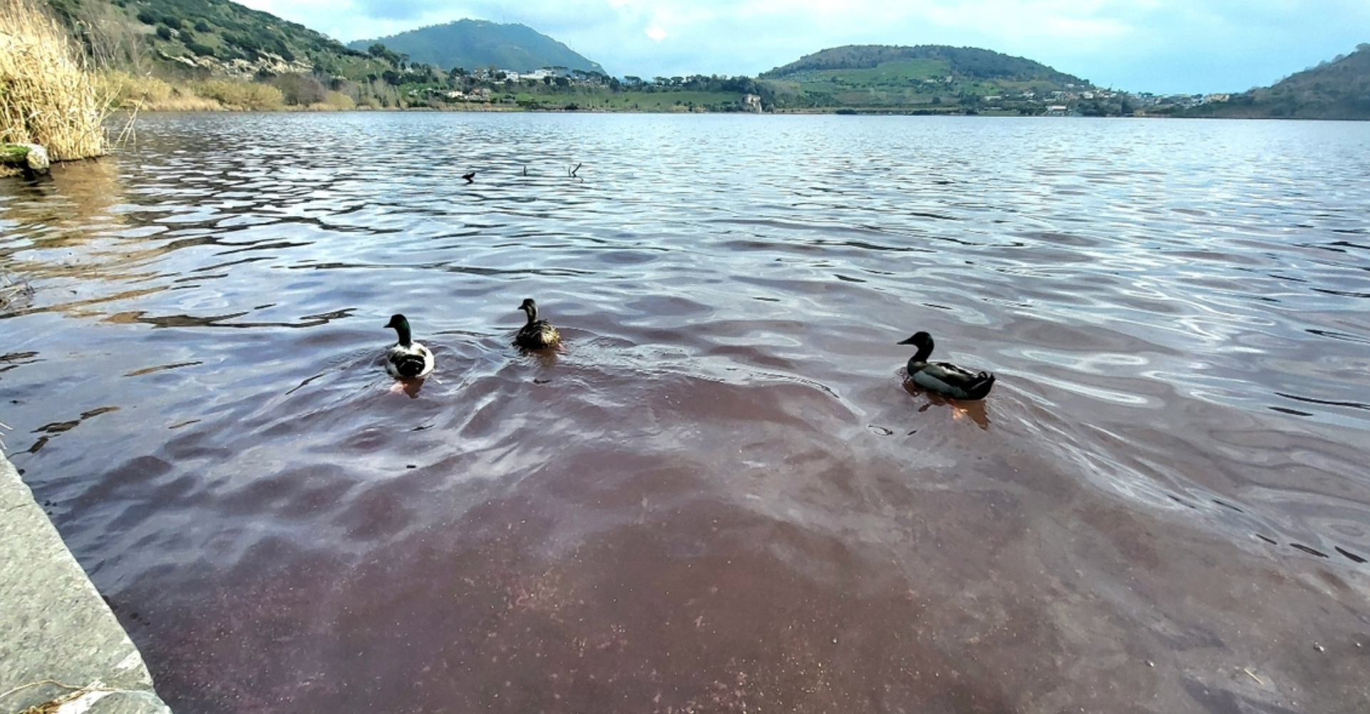 Nuovo allarme ai Campi Flegrei, ma questa volta non è il terremoto, ma il lago che si tinge nuovamente di rosso.