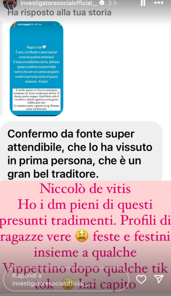 Intanto però l’esperto di gossip Alessandro Rosica, noto come Investigatore Social, ha parlato di presunti tradimenti di lui. Ecco le sue parole: