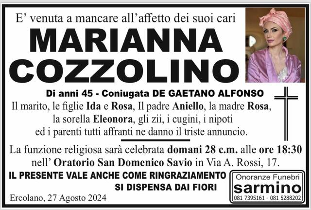 Lutto a Ercolano per la prematura morte di Marianna Cozzolino, deceduta a soli 45 anni.
