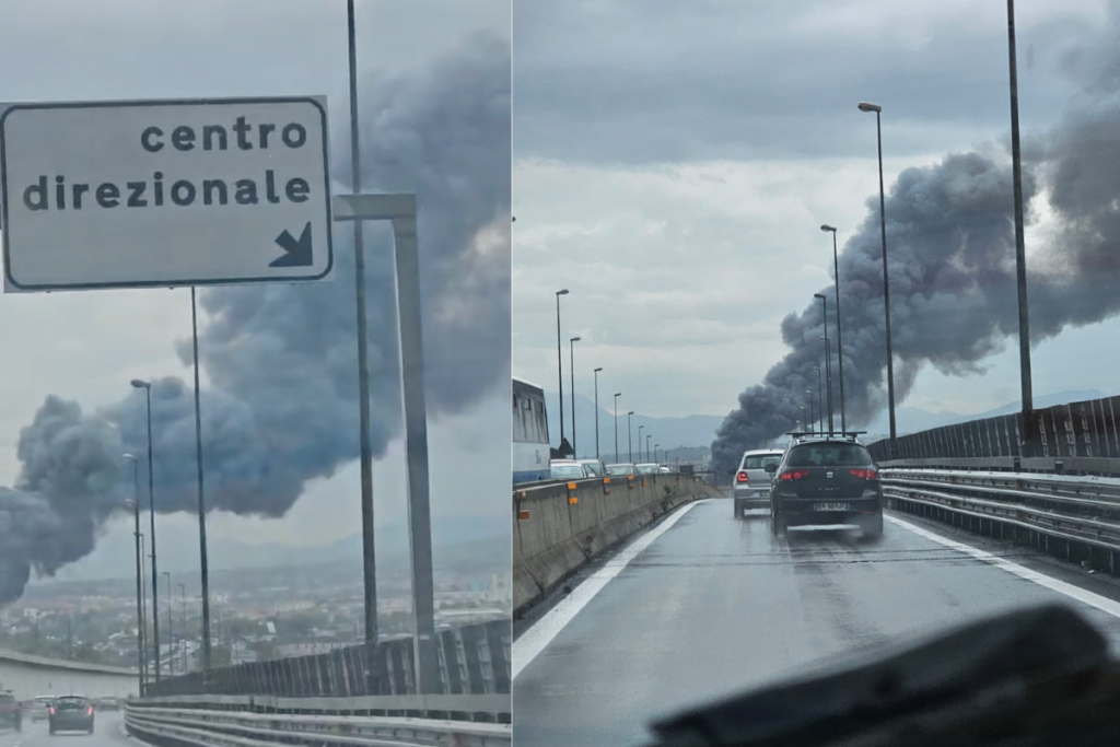 Una grande colonna di fumo è visibile in diverse zone di Napoli. Il luogo dell’incendio è nella zona industriale di Gianturco Poggioreale.
