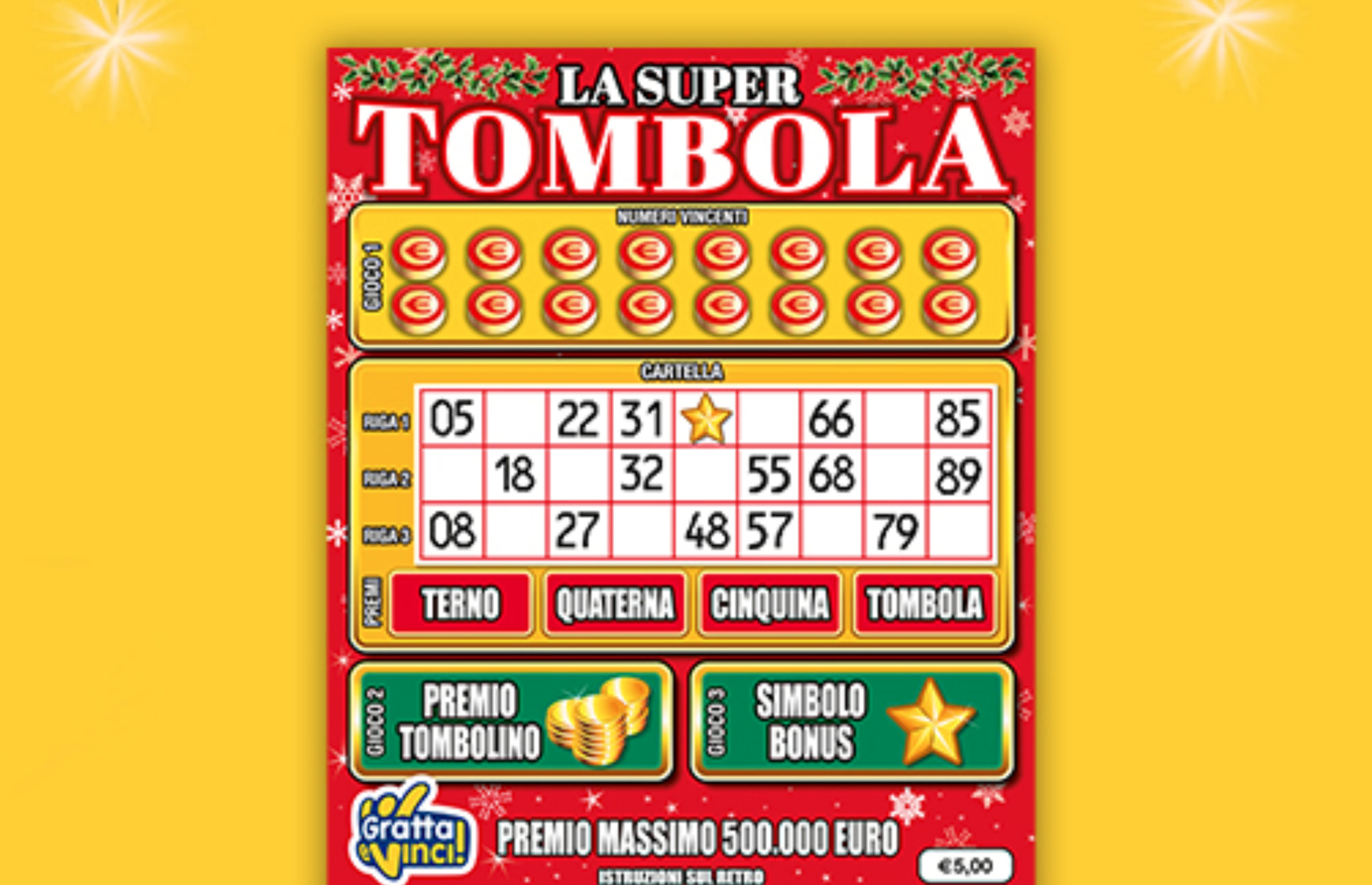 Tombola Super è il nuovo Gratta e Vinci online che porta la tradizione natalizia della tombola in una versione digitale e interattiva. Disponibile dall’ 11 dicembre 2024, il biglietto costa 10€ e offre un premio massimo di 2 milioni di euro