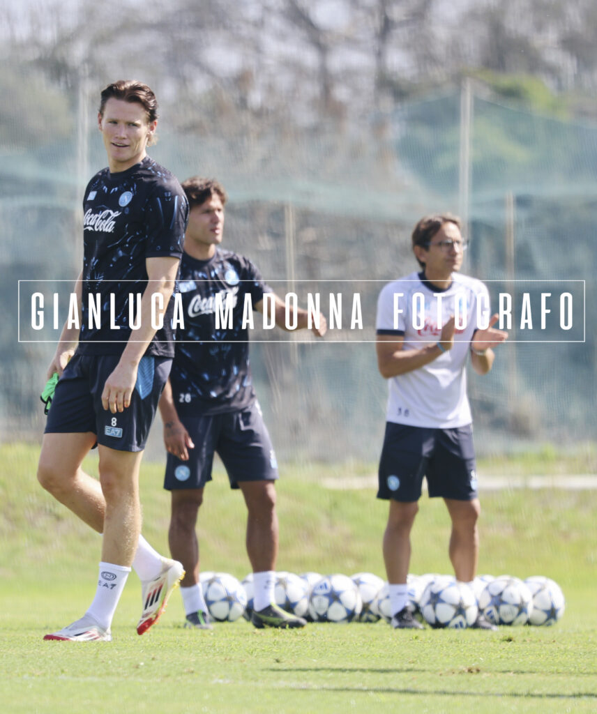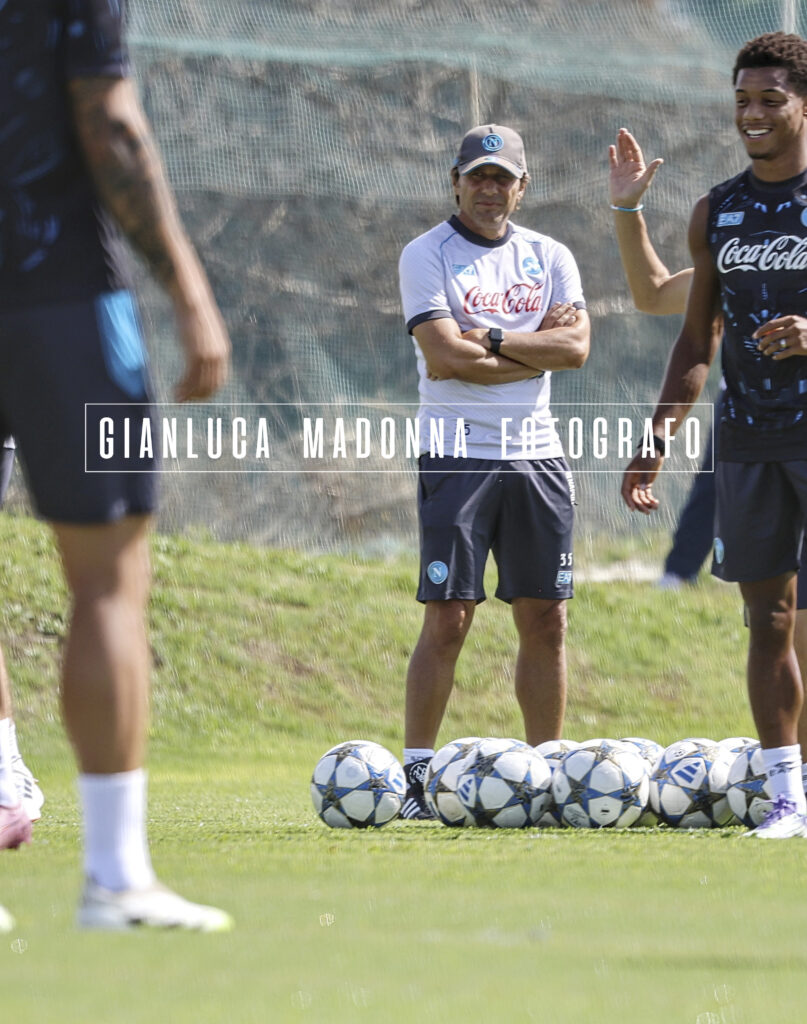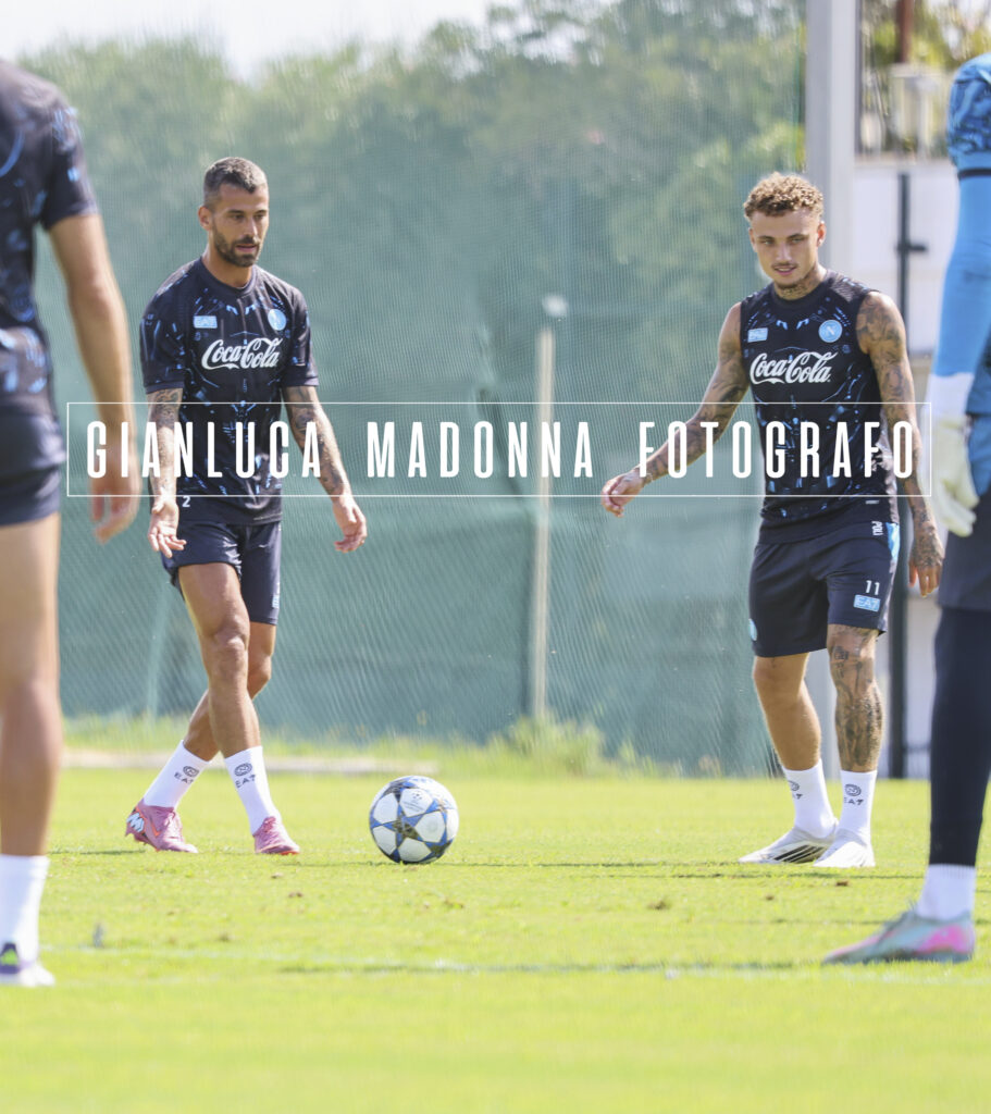 Stamane abbiamo assistito all’allenamento del Napoli all’SSC Napoli Training Center di Castel Volturno: gli azzurri di Antonio Conte si sono preparati per la partita di Champions League che si disputerà giovedi prossimo (domani) in Inghilterra contro il Manchester City di Pep Guardiola. I calciatori del Napoli si sono allenati a Castel Volturno prima di partire per il Regno Unito. Stretching, riscaldamento e tanti sorrisi per iniziare subito un torello per tutta la squadra. L’ambiente è davvero ottimo e solare, gli azzurri sono in forma. Presente anche Meret.