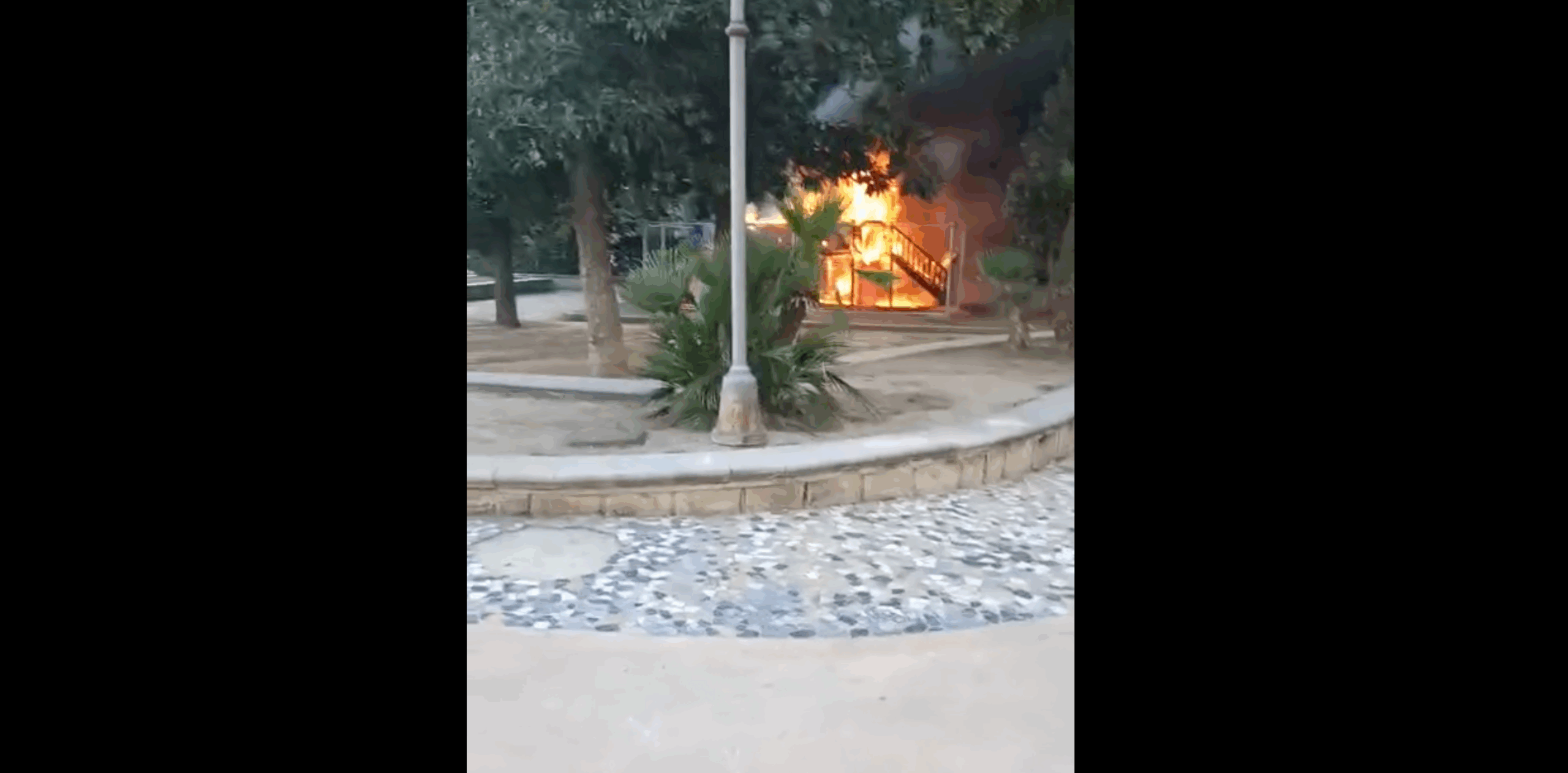 Moltissimi e spaventosi i video circolati sui social network, condivisi da cittadini e commercianti, che mostrano lo scivolo e altre attrezzature completamente avvolte dalle fiamme.