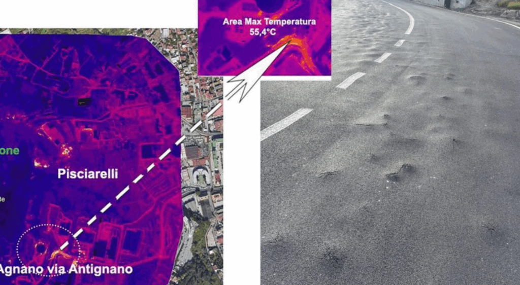In risposta alle segnalazioni di “bolle” sull’asfalto, gli specialisti dell’Osservatorio Vesuviano hanno eseguito specifici rilievi termici nell’area interessata. L’obiettivo era verificare l’eventuale presenza di un aumento di calore che potesse essere collegato ai rigonfiamenti. I risultati finora disponibili, tuttavia, non hanno indicato un innalzamento significativodella temperatura nella zona sottoposta a verifica.