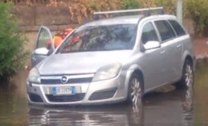 Nubifragi a Napoli: voragine si apre in strada, automobilista bloccato