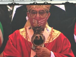Miracolo di San Gennaro al tempo del Covid. L’annuncio della liquefazione alle 10.02 dopo lo sventolio del fazzoletto bianco in un Duomo insolitamente vuoto ma in diretta streaming