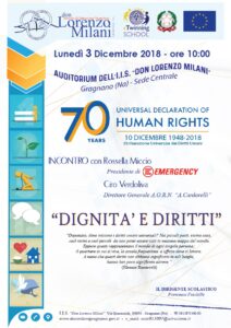 E’ in programma per lunedì 3 dicembre alle ore 10.30 presso l’Auditorium dell’I.I.S. “Don Lorenzo Milani” a Gragnano (Napoli) la giornata di incontro che vedrà protagonisti il Presidente di Emergency Rossella Miccio e il Direttore Generale del Cardarelli Ciro Verdoliva. Tema del dibattito, davanti agli studenti dell’istituto, “Dignità e Diritti Umani” in occasione dei 70 […]