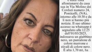 Ansia a Ponticelli dove è scomparsa la signora Luisa, una donna di 51 anni che si chiama Luisa Pagliuca. E’ uscita da casa, in via Molino dei Cordari a Ponticelli, sabato mattina, 1 marzo, intorno alle 10,30. Secondo una testimonianza l’ultima volta è stata avvistata in prossimità dell’Ospedale del Mare, ma da allora non si […]