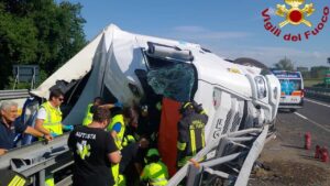 Vai all’articolo from Incidente mortale sull’A1: tir si ribalta, morto 48enne