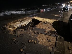 Emergenza maltempo, voragine choc sul lungomare: volontari di Protezione civile in azione