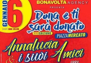 La tradizionale kermesse ‘Dona e ti sarà donato’ giunge alla sua diciassettesima edizione grazie al lavoro della Bonavolta Agency e della BMuisc. Un grande evento che si terrà in Piazza Mercato il 6 gennaio in occasione dell’Epifania. Un evento condotto dallo showman Gaetano Gaudiero e vedrà la partecipazione di Mario Forte e Mary Marino e […]