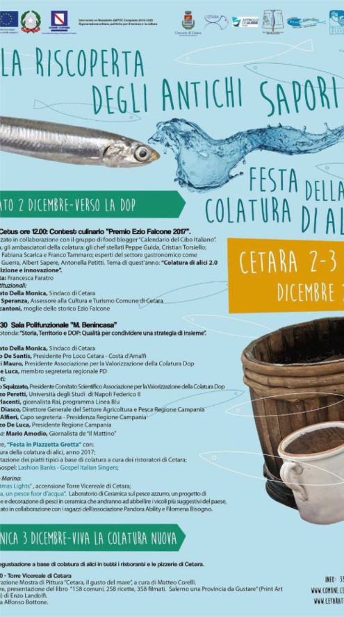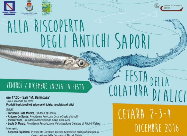 Anche quest’anno Cetara sarà la location perfetta per la “Festa della colatura di alici”: dal 2 al 3 dicembre 2017 la cittadina amalfitana omaggerà uno dei condimenti più amati e usati del nostro territorio.